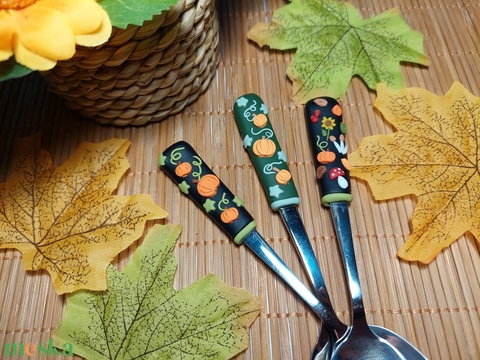 Őszi tökös mintás kiskanál gyurma díszítéssel fahéj narancs angyalka rénszarvas