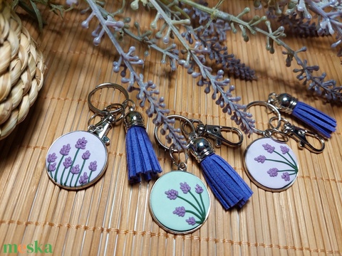 Levendula mintás táskadísz kulcstartó süthető gyurmából