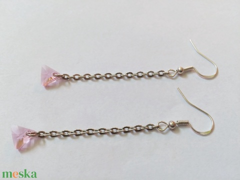 Hosszú lógós fülbevaló rózsaszín háromszög függővel