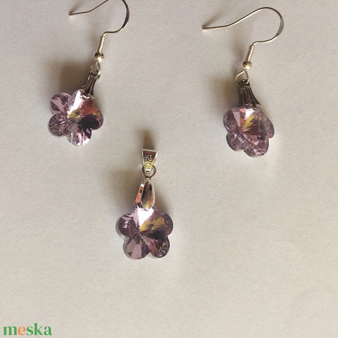 Rózsaszín virág kristályos fülbevaló ezüst szerelékkel