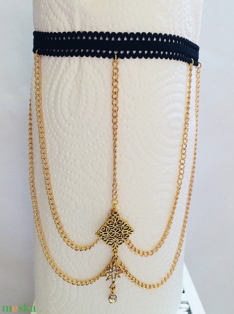 Fekete csipke rugalmas comb lánc comb ékszer arany szín