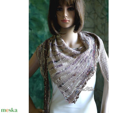 ITO SÁLKENDŐ - exkluzív kézzel kötött 100% selyem bourette kendő, sál / drapp