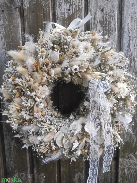 Szárazvirág koszorú,ajtódísz(natúr-beige)