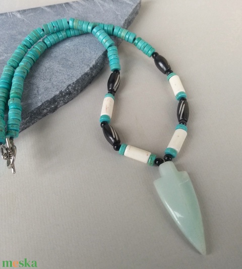 Amazonit lándzsa medálos nyaklánc