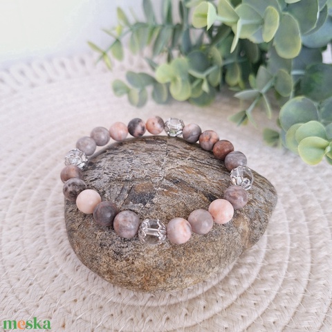 Zebra jáspis-hegyikristály ásvány karkötő