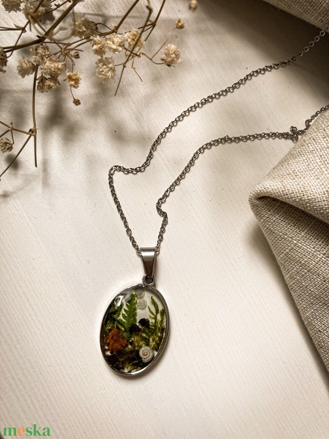 Medálos nyaklánc - Erdő ihlette műgyanta medál nemesacél láncon