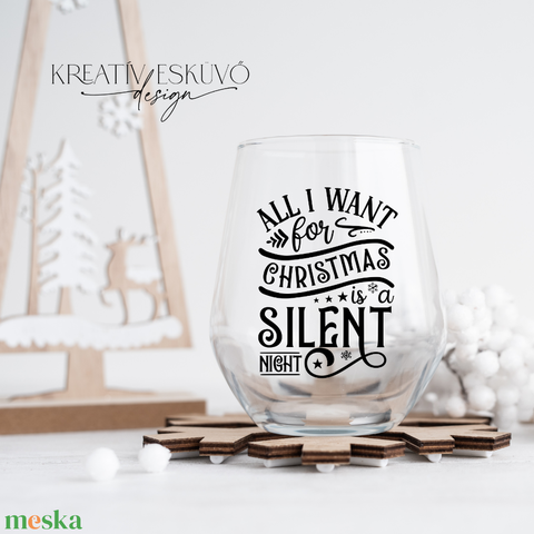 All I want for Christmas..., feliratos boros pohár, vicces feliratos pohár, karácsonyi feliratos