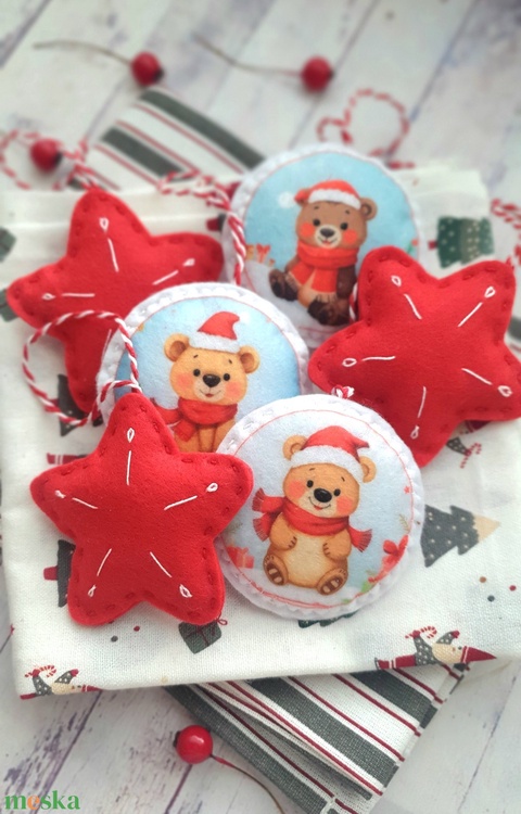 Bababarát karácsonyi filc díszek, macik és csillagok