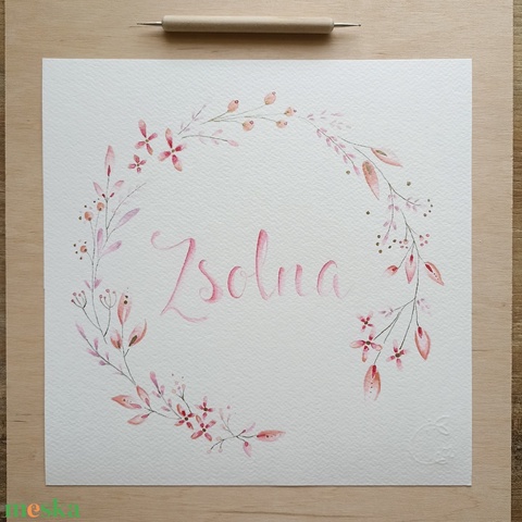 Rajzműhelyem névadó terméke a NEVECSKE -baba és kisgyermek festett/akvarell névtábla. Első állandó kollekcióm a Botanique egyik darabja ez az Estike minta.