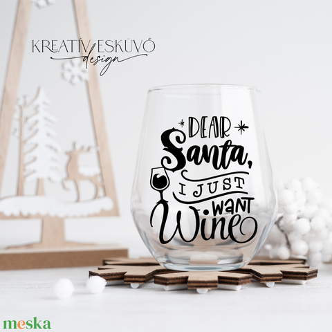Dear Santa, I just want wine..., feliratos boros pohár, vicces feliratos pohár, karácsonyi feliratos