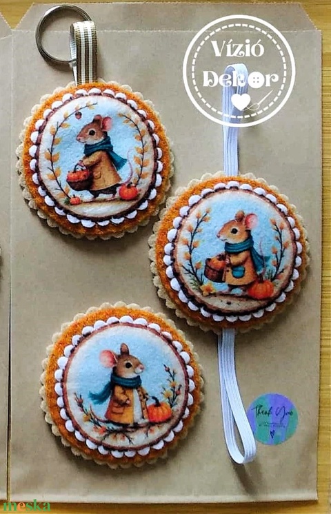 Egérkés szett tökkel (könyvjelző, mágnes, kulcstartó dísz)