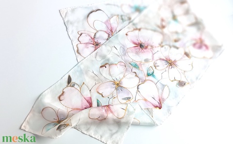 Kézzel festett, művészi és hordható sálak tiszta selyemből. Időtálló érték, természetesen.