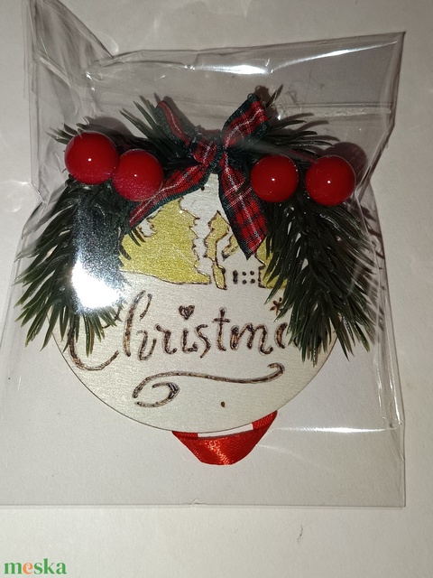 Karácsonyfa dísz pirogràf teknikàval akril festéssel díszítve