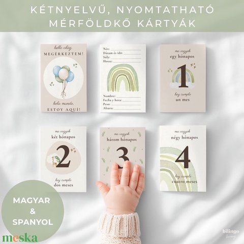 Őrizd meg kisbabád első évének legkülönlegesebb pillanatait a Bilingo Living magyar–spanyol kétnyelvű babamérföldkő kártyáival.