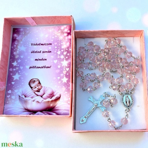 Keresztelő ajándék rózsafüzér díszdobozban kísérő szöveggel lány gyermeknek 5633794