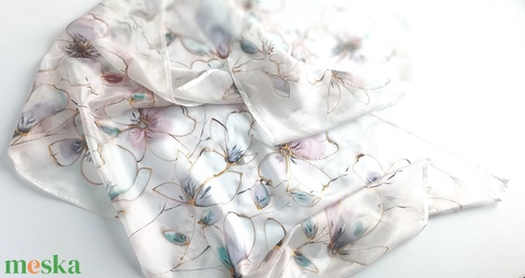 Kézzel festett, művészi és hordható sálak tiszta selyemből. Időtálló érték, természetesen.