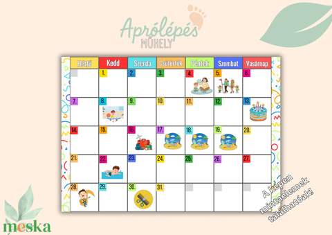 Gyerekek Havi Tervezője – Képes Naptár a Fontos Eseményekhez - Gyermeknaptár