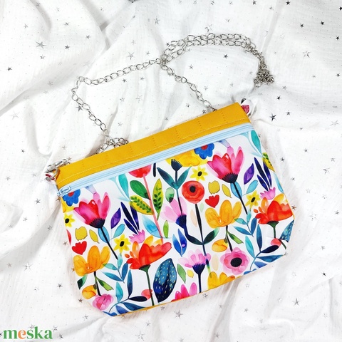 Kb. 20x30 cm-es kistáska, bulira, fesztiválra vízlepergető vászonból