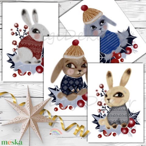 Karácsonyi nyuszik. Aranyos ünnepi képeslapok csomagban.
