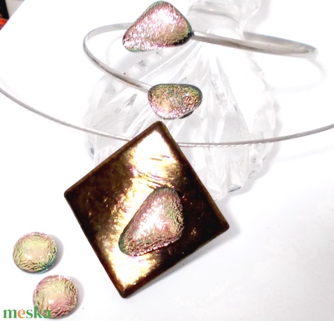 - Anyaga: ékszerüveg, ékszer szerelék, sodrony, bőrszál