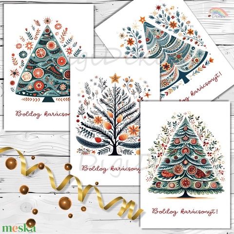 Karácsonyfák skandináv stílusban. Ünnepi képeslapok.