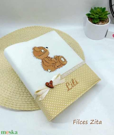 Teddy macis baba fotóalbum hímzett névvel - textil fényképalbum macival