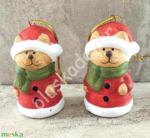 Cica, télapó, karácsonyi, adventi dekorációs kerámia figura, 6,5x3,5cm