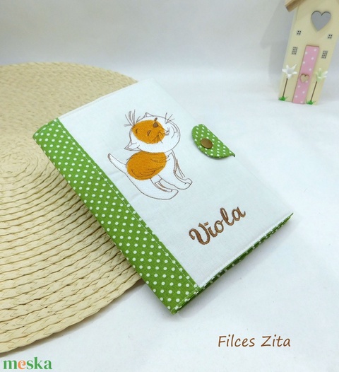 Cicás egészségügyi kiskönyv borító / cicás hímzett eü borító
