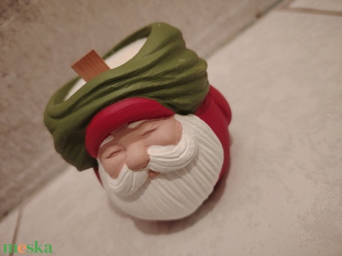 - Anyaga: kerasoy container szójaviasz, kerámiapor, akril festék, vízálló matt lakk, fakanóc fém talppal