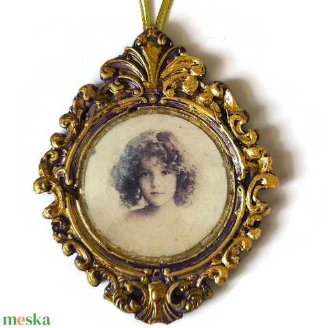 Barokk stílusú karácsonyfadísz leány portréval, öntött kerámia