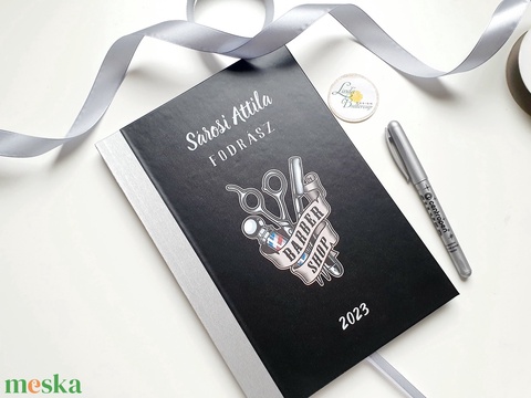 otthon & életmód, papír, írószer, naptár & tervező, karácsony, naptár, zsebnaptár, kalendár, határidőnapló, ajándék, tervező, sminkes, kozmetikus, fodrász, körmös, pillás, masszőr, karácsonyi, egyedi, névreszóló, időpont, fodrásznak, olló, fésű, minimál, logóval, fekete, ezüst, barber