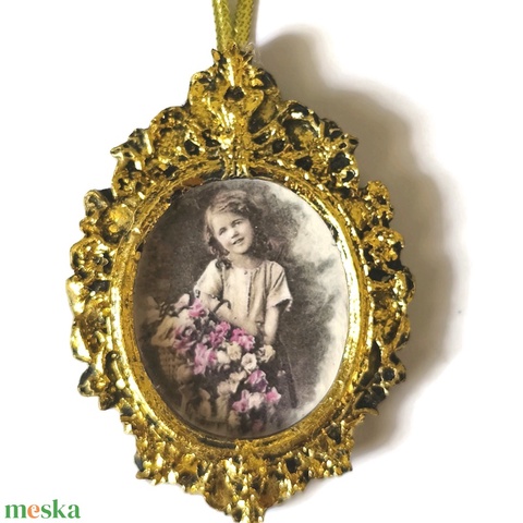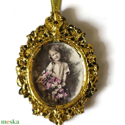 Barokk stílusú karácsonyfadísz lány portréval, öntött kerámia