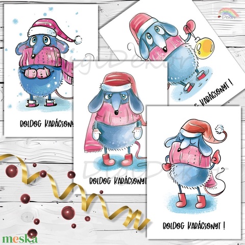 Karácsonyi üdvözlőlapok vicces egerekkel. 4 db-os csomag