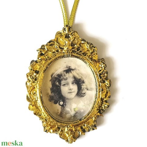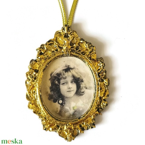 Barokk stílusú karácsonyfadísz lány portréval, öntött kerámia