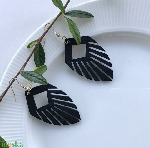 Fából készült pávatoll alakú fülbevaló - Mesedoboz