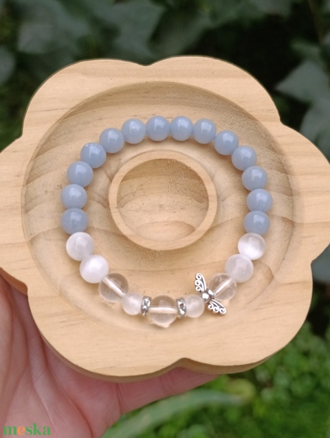 Angyali védelem karkötő angelit, szelenit és hegyikristály ásványokból
