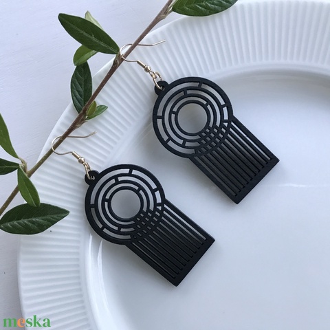 Fából készült, elegáns, fekete fülbevaló - Mesedoboz