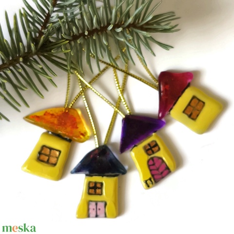Sárga apró házikók, üveg ajándékkísérő
