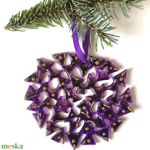 Lila áttört üveg karácsonyfadísz arany díszítéssel