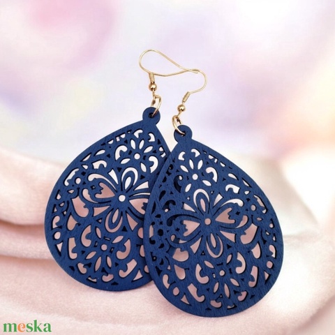 Ovális Kék mandala fa fülbevaló