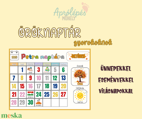 Ez a színes, játékos és oktató naptár segít a gyerekeknek eligazodni a mindennapokban, legyen szó családi ünnepekről, óvodai vagy iskolai eseményekről, vagy akár különleges világnapokról.