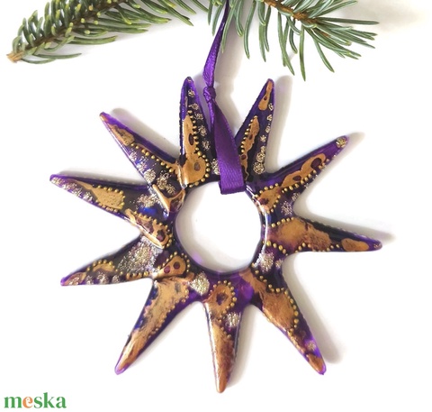 Lila csillag üveg karácsonyfadísz arany diszítéssel