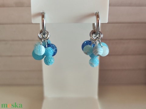 Nemesacél fülbevaló kék sárkány Achát gyöngyökkel!