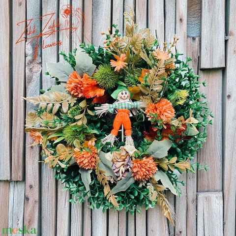 Őszi madárijesztős ajtódísz – zöld-narancs