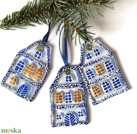 Havas házak üveg karácsonyfadísz