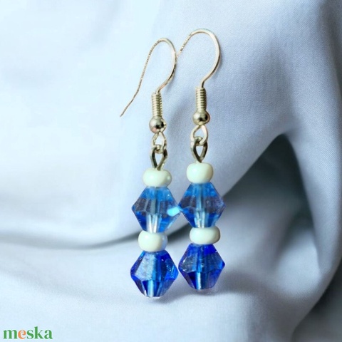 kék fehér gyöngyös fülbevaló