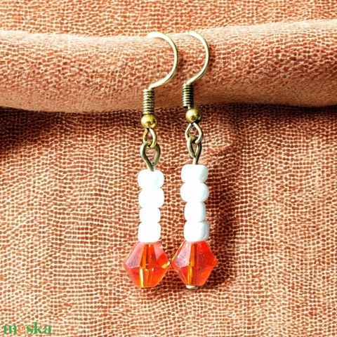 Narancs fehér gyöngyös fülbevaló