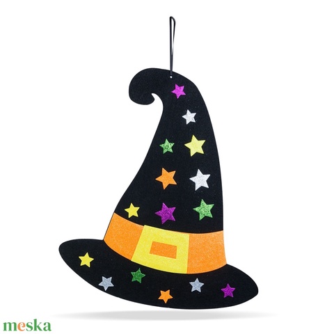 Halloween-i dekoráció - boszorkánykalap - akasztható - filc - 38 x 33 cm