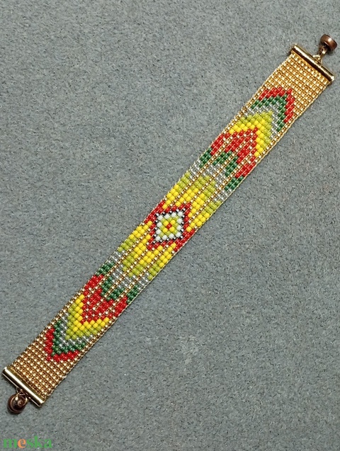 "arany-tarka 5 " diszdobozos gyöngyszövött karkoto