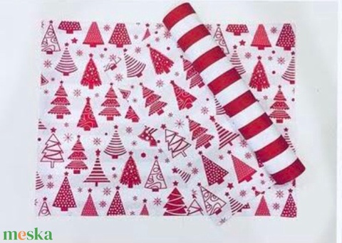 Tányéralátét fehér alapon piros fenyőfa mintás